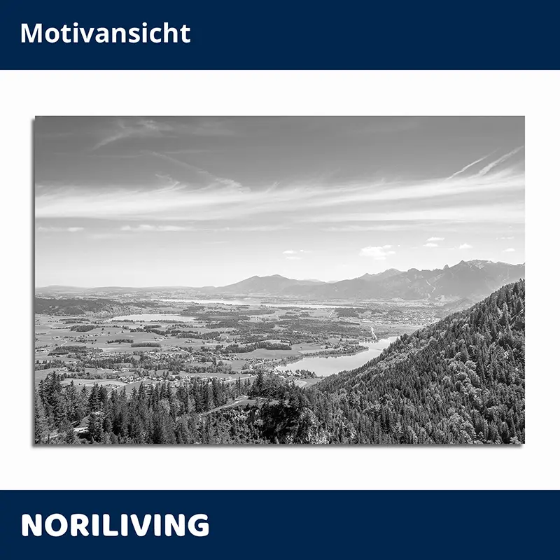 Duschrückwand Aluverbund Blick ins Tal im Allgäu 427 schwarz-weiß