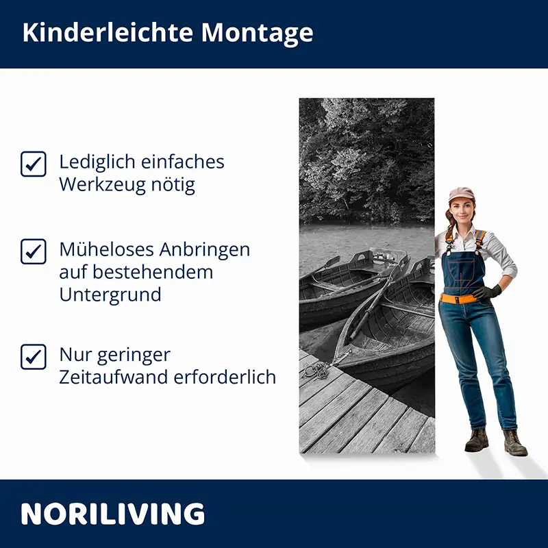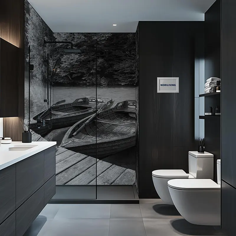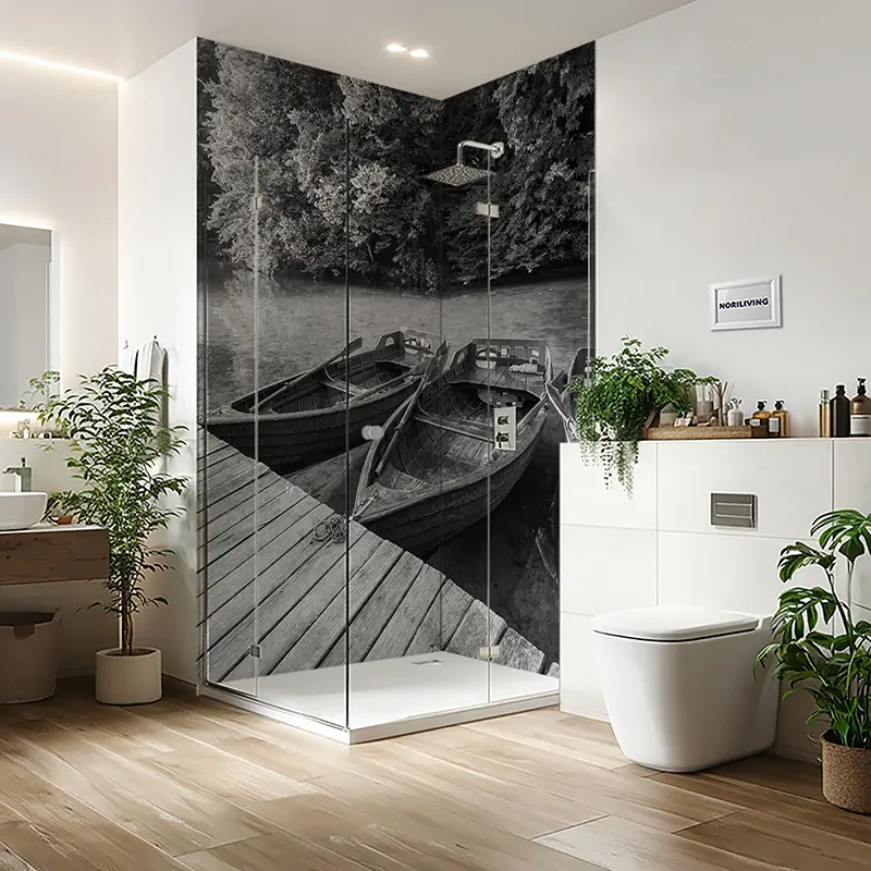 Duschrückwand Aluverbund Boote am Steg 274 schwarz-weiß