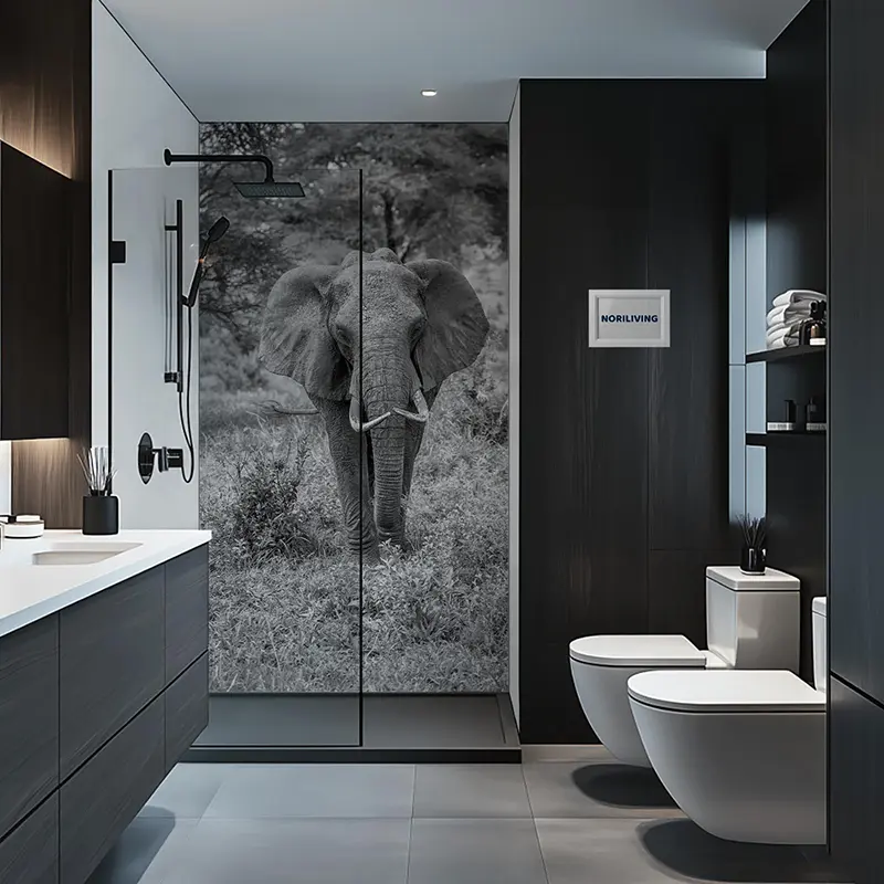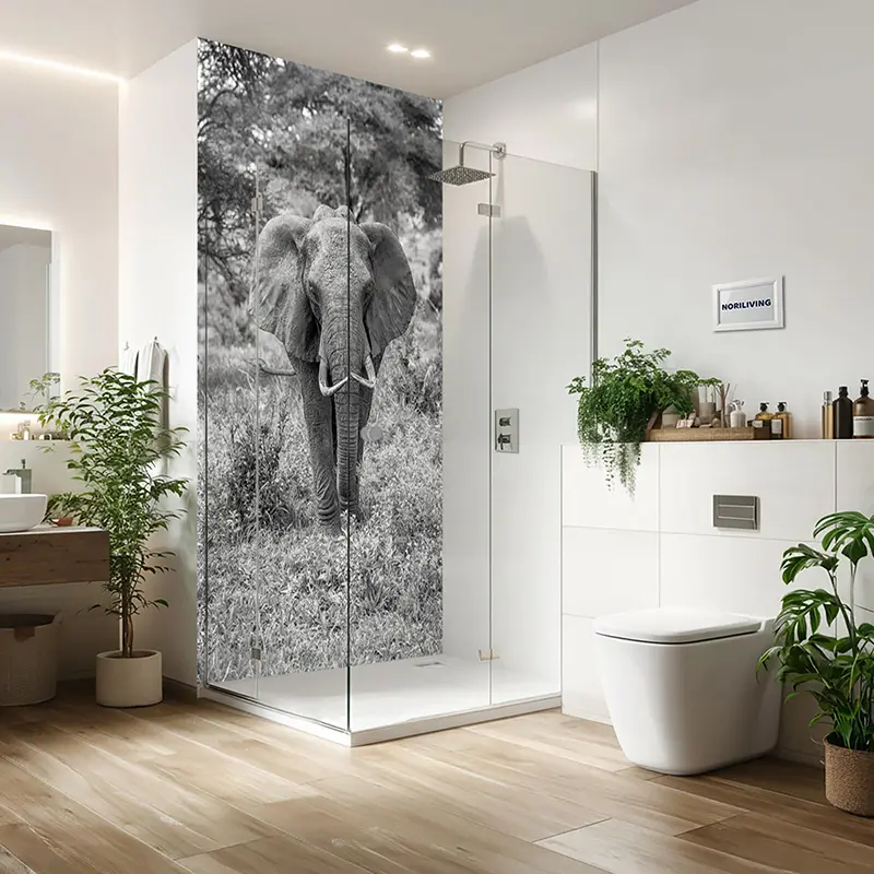 Duschrückwand Aluverbund Elefant 614 schwarz-weiß