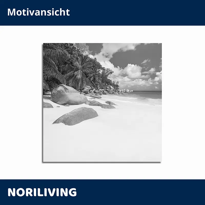 Produktinformationen "Duschrückwand Aluverbund Karibik Bucht Strand 049 schwarz-weiß"