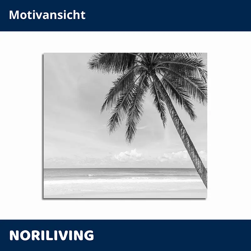 Produktinformationen "Duschrückwand Aluverbund schöner Strand und tropisches Meer mit Palme 433 schwarz-weiß"