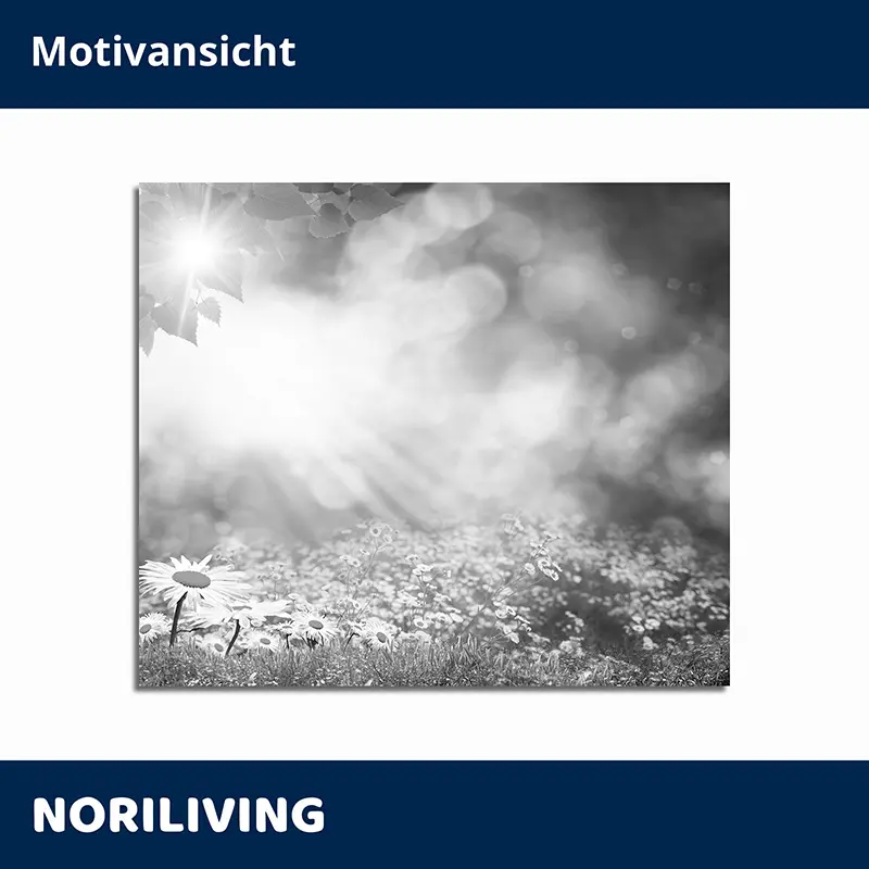 Produktinformationen "Duschrückwand Aluverbund Sommerwiese mit Gänseblümchen 320 schwarz-weiß"