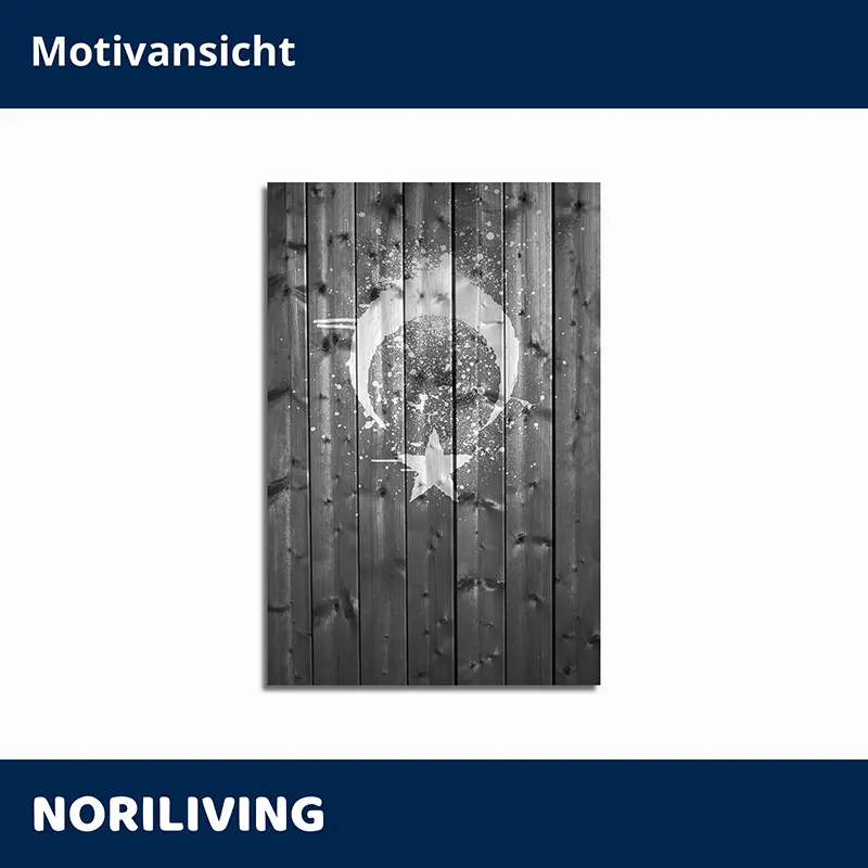 Produktinformationen "Duschrückwand Aluverbund türkische Flagge auf roter Holzstruktur 790 schwarz-weiß"