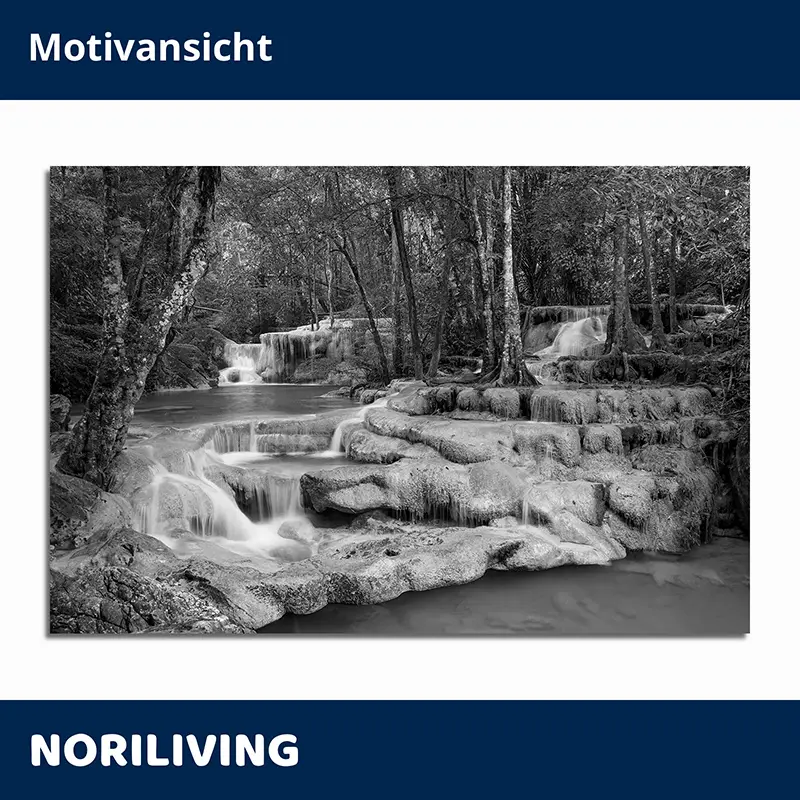 Produktinformationen "Duschrückwand Aluverbund Wald Bach Wasserfall 079 schwarz-weiß"