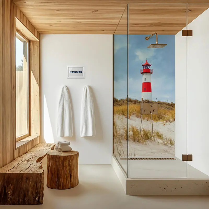 Duschrückwand Einzel | Ecke | Alu Leuchtturm am Strand 815