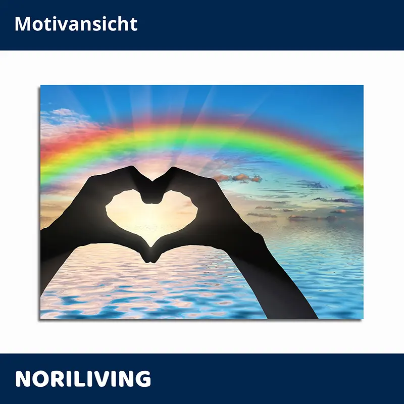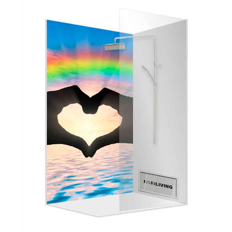 Produktinformationen "Duschrückwand Einzel | Ecke | Nische | Alu Handgeste Herzform vor Sonnenuntergang 503"