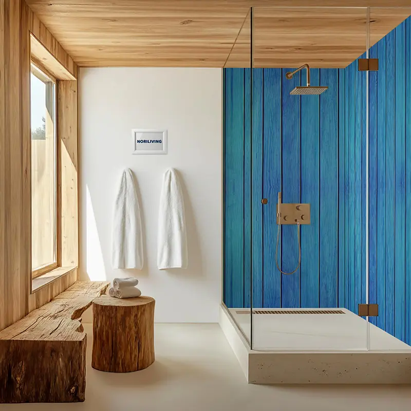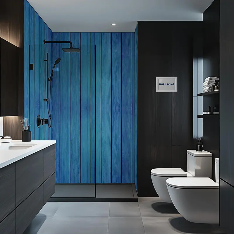 Duschrückwand Einzel | Ecke | Nische | Alu Holzzaun blau 470