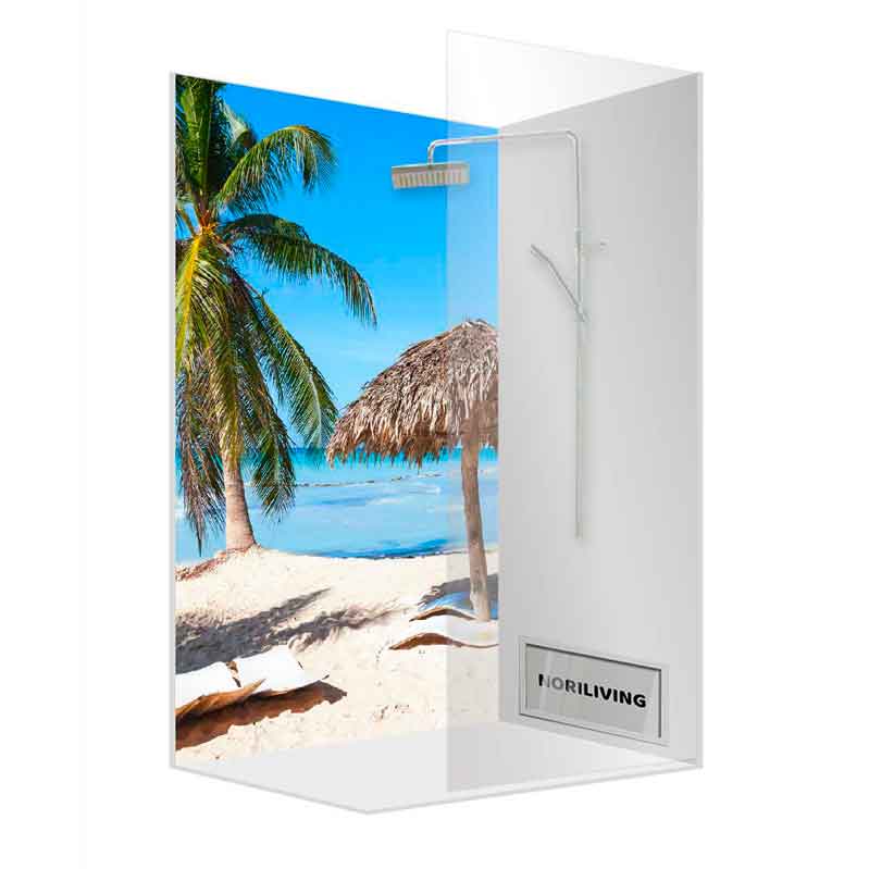 Produktinformationen "Duschrückwand Einzel | Ecke | Nische | Alu Kokospalmen am weißen Sandstrand Insel Saona 558"