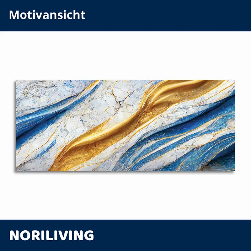 Produktinformationen "Duschrückwand Einzel | Ecke | Nische | Alu Marmor beige-signalblau mit goldfarbigen Einschlüssen 092"