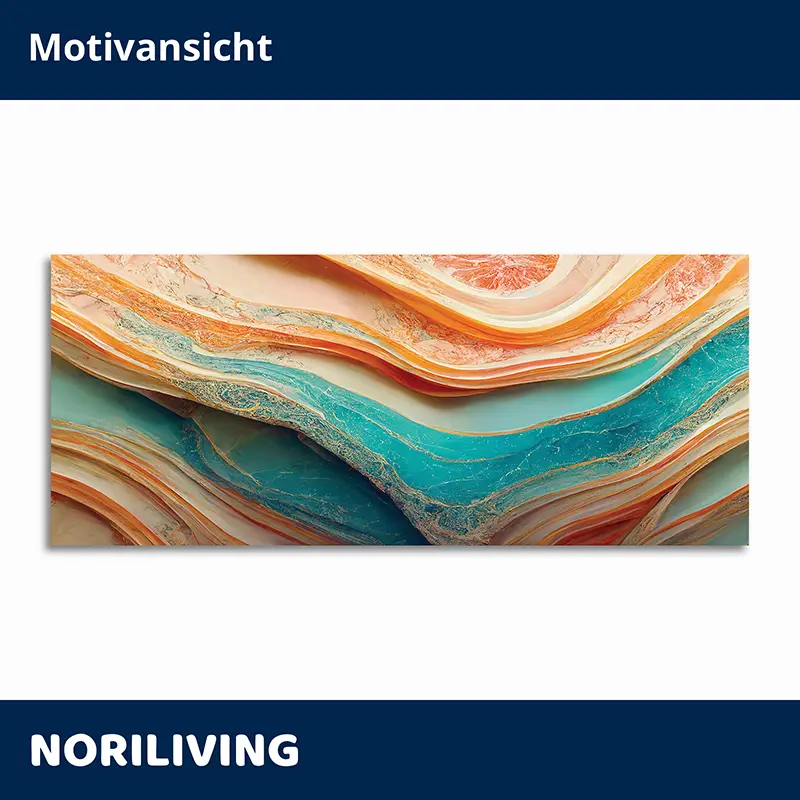 Produktinformationen "Duschrückwand Einzel | Ecke | Nische | Alu Marmor rosé-orange-helltürkisblau mit Einschlüssen 099"