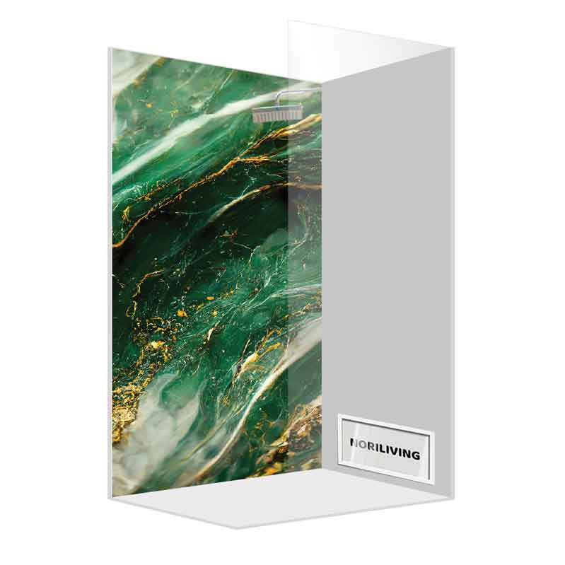 Duschrückwand Einzel | Ecke | Nische | Alu Marmor türkisgrün-moosgrün mit goldfarbigen Einschlüssen 098