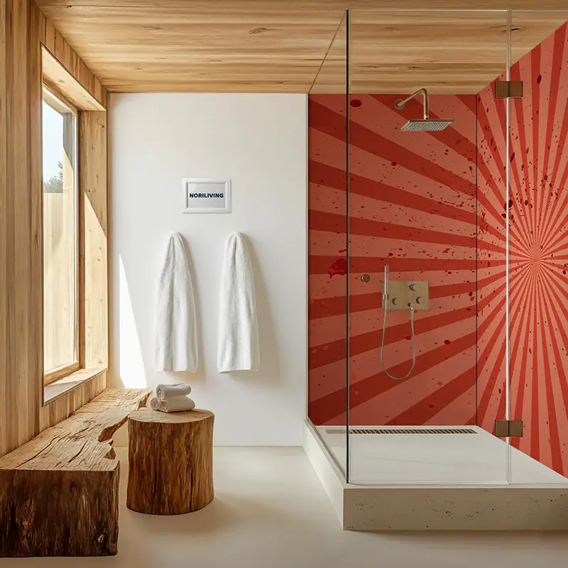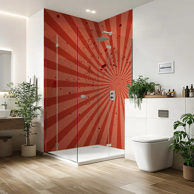 Duschrückwand Einzel | Ecke | Nische | Alu rötliches Strahlenmuster 163