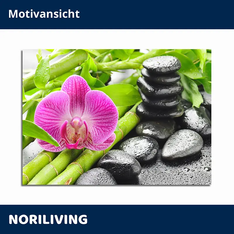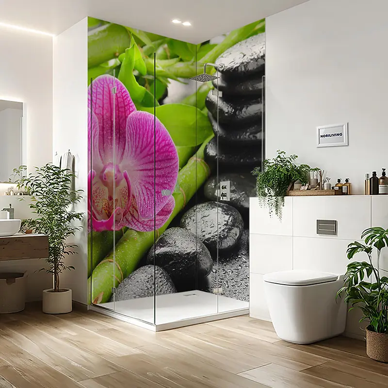 Produktinformationen "Duschrückwand Einzel | Ecke | Nische | Alu Zen Steine mit Orchidee und Bambus 896"